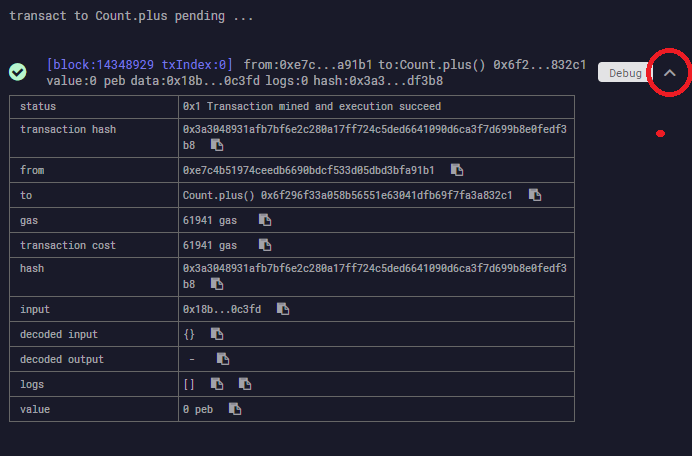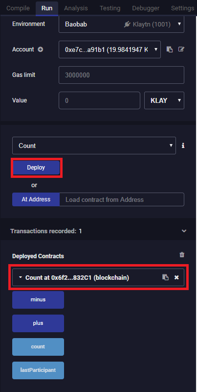 자 그럼 minus 혹은 plus 버튼을 눌러서 컨트랙트를 실행시켜보도록 합시다.