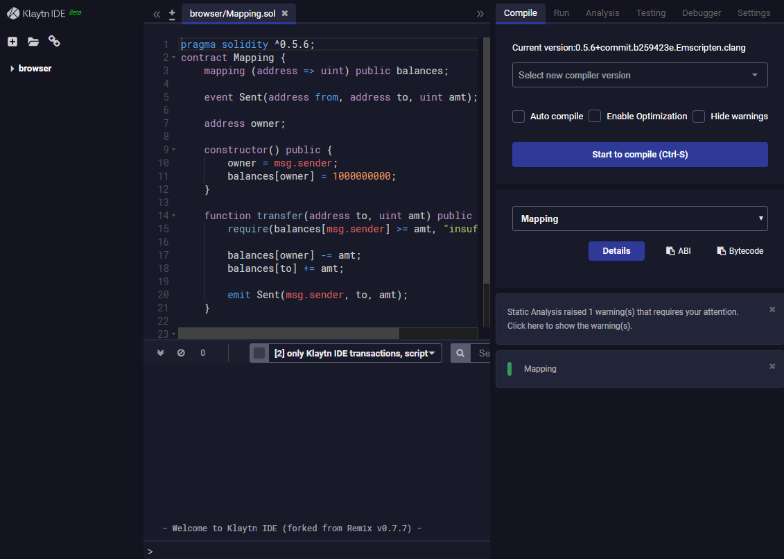 웹 IDE, 설치형 IDE가 존재하는 것처럼 클레이튼에서는 웹에서 IDE를 지원합니다.