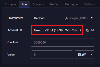 클레이튼의 지갑주소가 들어가는 변수로 보면 됩니다.