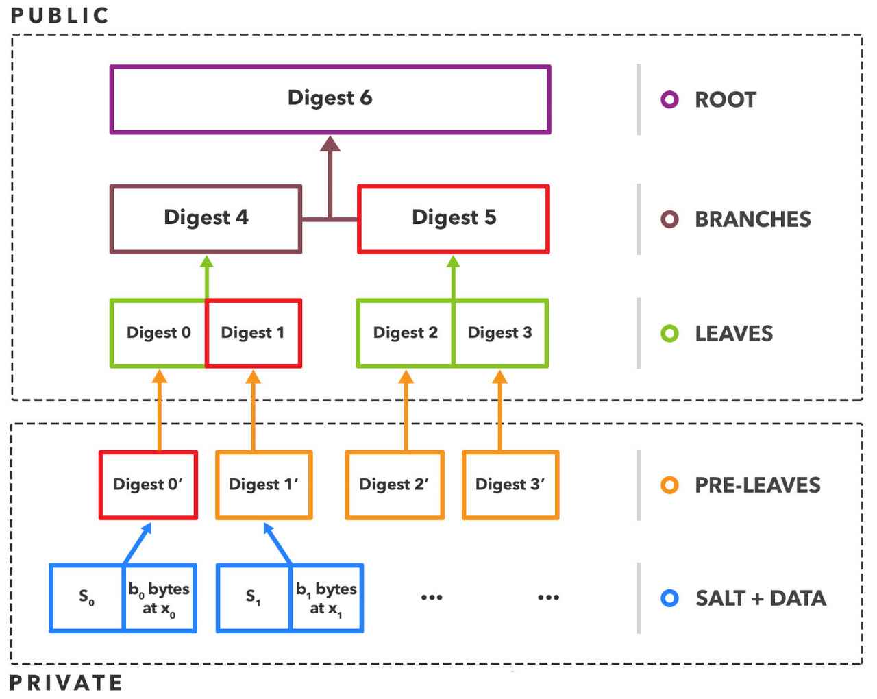 전형적인 Merkle 증명 검증은 검증자가 나무의 깊이를 알 필요가 없다. 대신 검증자는 데이터의 유효성을 검사해야합니다. Storj 감사 트리에서 깊이가 검증자에게 알려지지 않은 경우 마이너는 트리에서 해시에 대한 Merkle 증명을 전송하여 확인 프로세스를 공격 할 수 있습니다. 이 증명은 여전히 Merkle 루트를 생성하므로 일부 노드의 유효한 증명입니다. 그러나 검증자가 트리를 생성하는 데 사용 된 데이터를 보유하지 않기 때문에 증명이 해당 챌린지에 해당하는 특정 리프에 대한 것인지 검증 할 수있는 방법이 없습니다. 검증자는 트리 깊이, 잎 노드 세트 또는 사전 잎 세트와 같은 트리 바닥에 대한 정보를 저장해야합니다. 이 중 깊이가 가장 작기 때문에 바람직합니다.