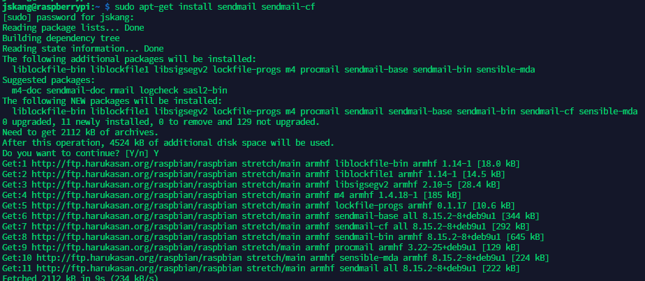 만약 pi 계정으로 "> /etc/mail/sendmail.cf" 명령을 수행할 경우 권한 오류가 발생할 수 있습니다.