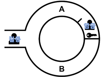 통로 가운데로 가면 양쪽으로 문이 잠겨 갇히게 되는 한 터널이 있습니다. 그 양쪽 문 모두 임금님이 가지고 있는 열쇠로만 열 수 있게 되어있습니다. 길동이가 말하는 방향의 길로 문을 열고 나온다면 임금님인것이 증명되고 갇혀서 나오지 못한다면 임금이 아닌 신분을 속인것으로 알 수 있습니다.