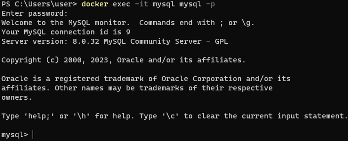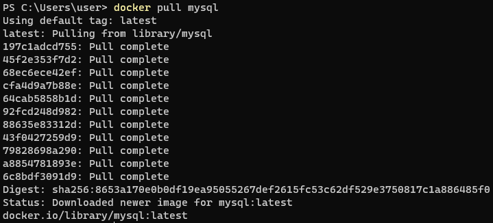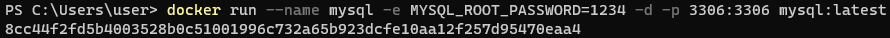 docker run --name mysql -e MYSQL_ROOT_PASSWORD=1234 -d -p 3306:3306 mysql:latest