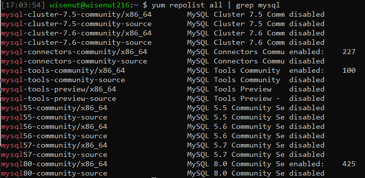 yum repolist all | grep mysql